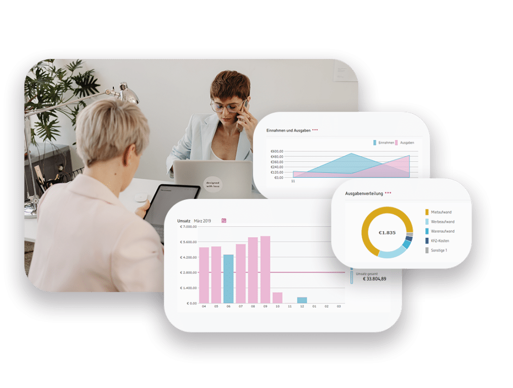 Erledige deine Buchhaltung selbst und behalte stets den Überblick über deine Liquidität und Finanzen. Damit du mehr Zeit fürs wirkliche Geschäft hast!